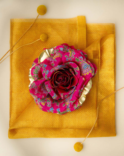 Elevate any look with a silk rose brooch. A colorful and classy way to show your sense of style and sustainability.