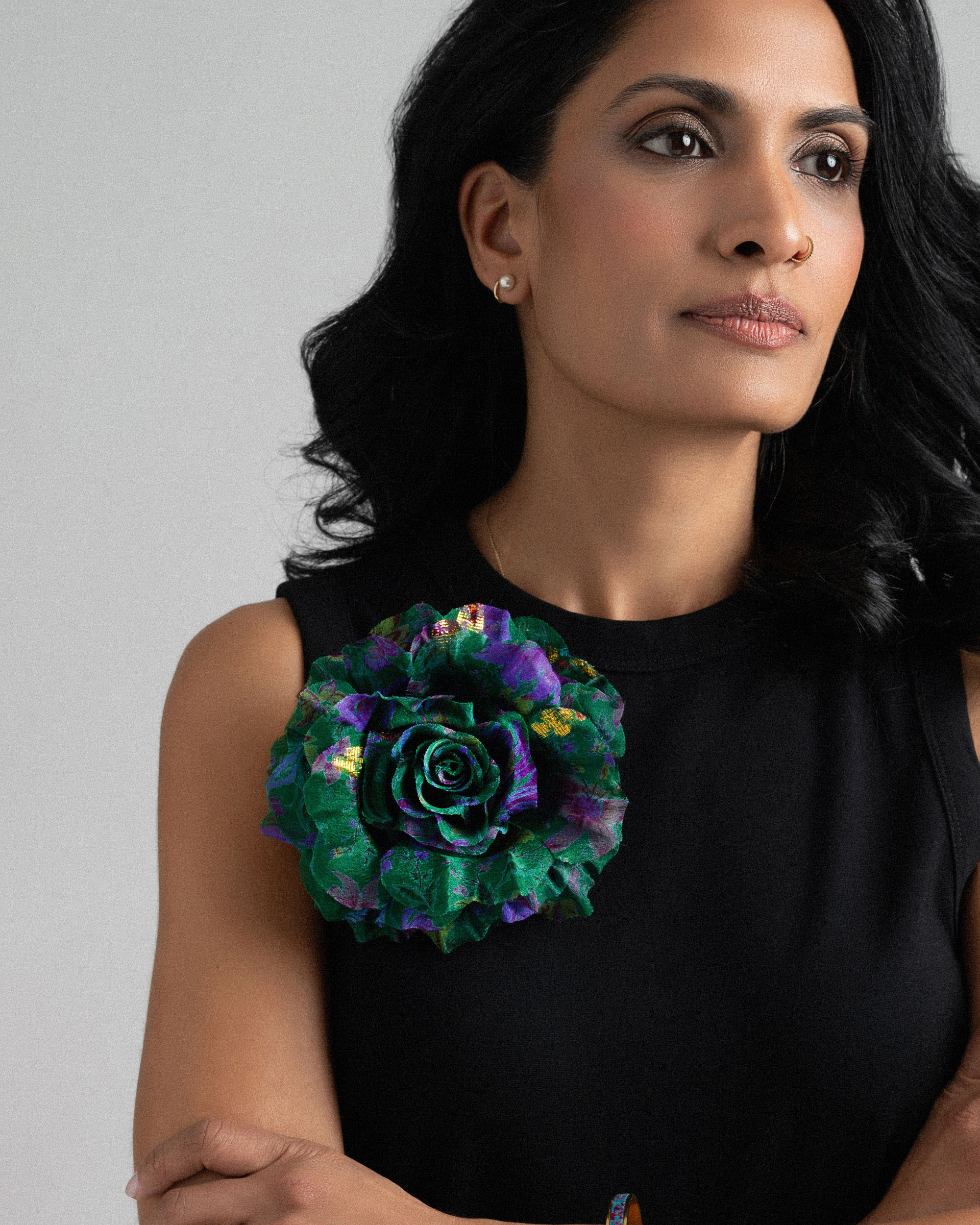 Elevate your look with a silk rose brooch. A colorful and joyous way to celebrate your unique sense of style.